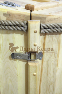 Разборный вид кедровой бочки позволит занести её практически в любой проём и собрать, не прибегая к услугам столяра. Для этого мы разработали свой уникальный метод разборки и сборки кедровой бочки. В комплекте есть всё необходимое для того, чтобы собрать изделие в домашних условиях.